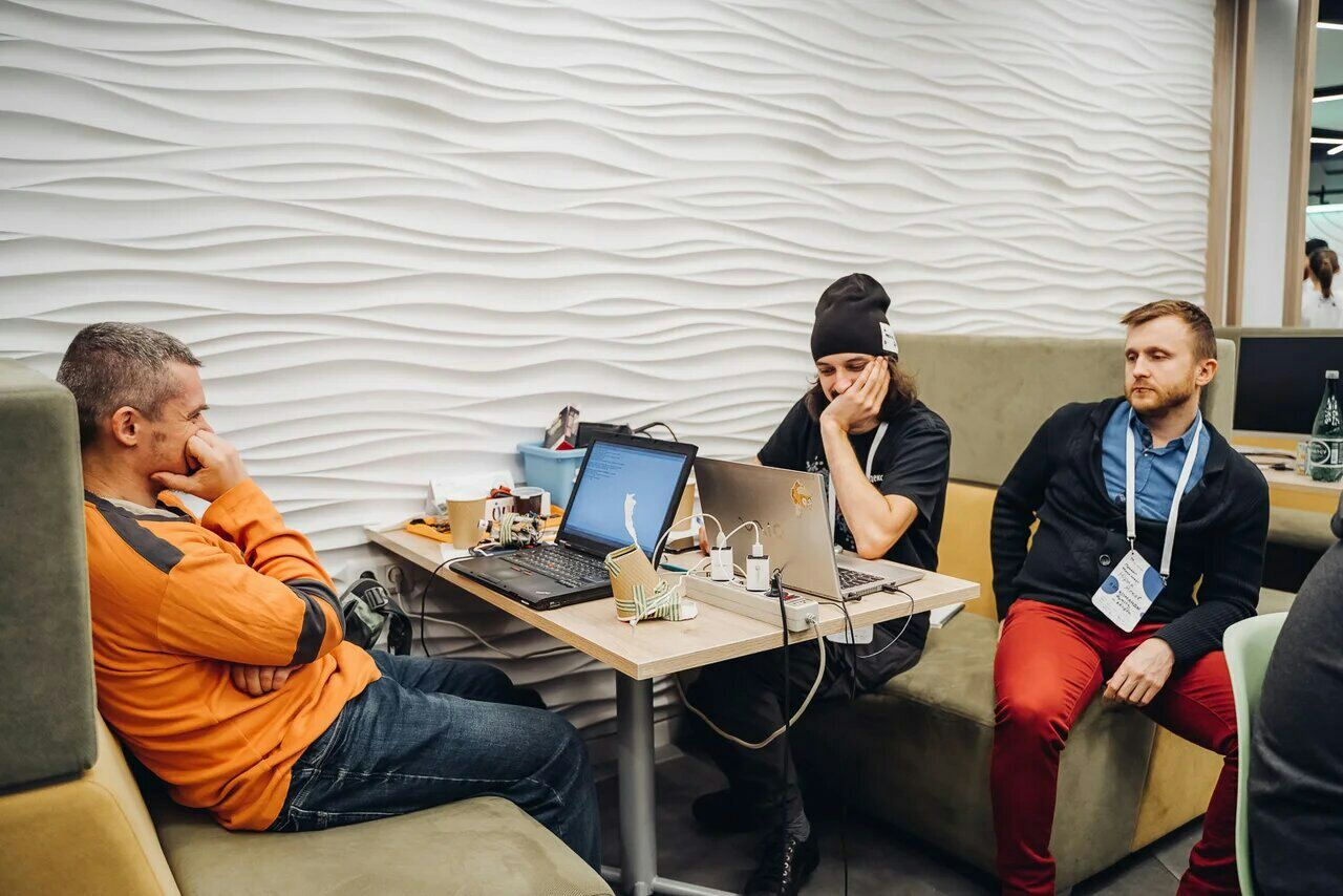 Хакатон проходил в субботу и воскресенье, в офисе Крока в Москве. Безлимитная еда и напитки, полный зал айтишников в свитерах. Мне это напомнило школьную олимпиаду по программированию, только для взрослых и с чипсами на столах.